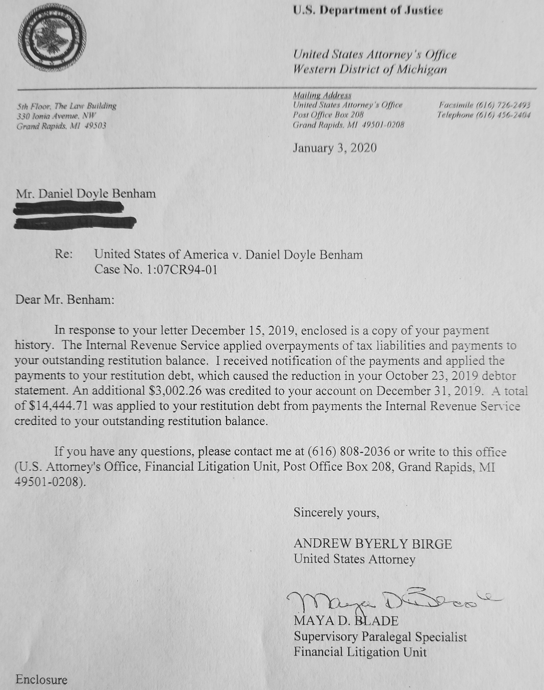 learned of Dan's indictment within a few years on tax evasion and bankruptcy fraud
