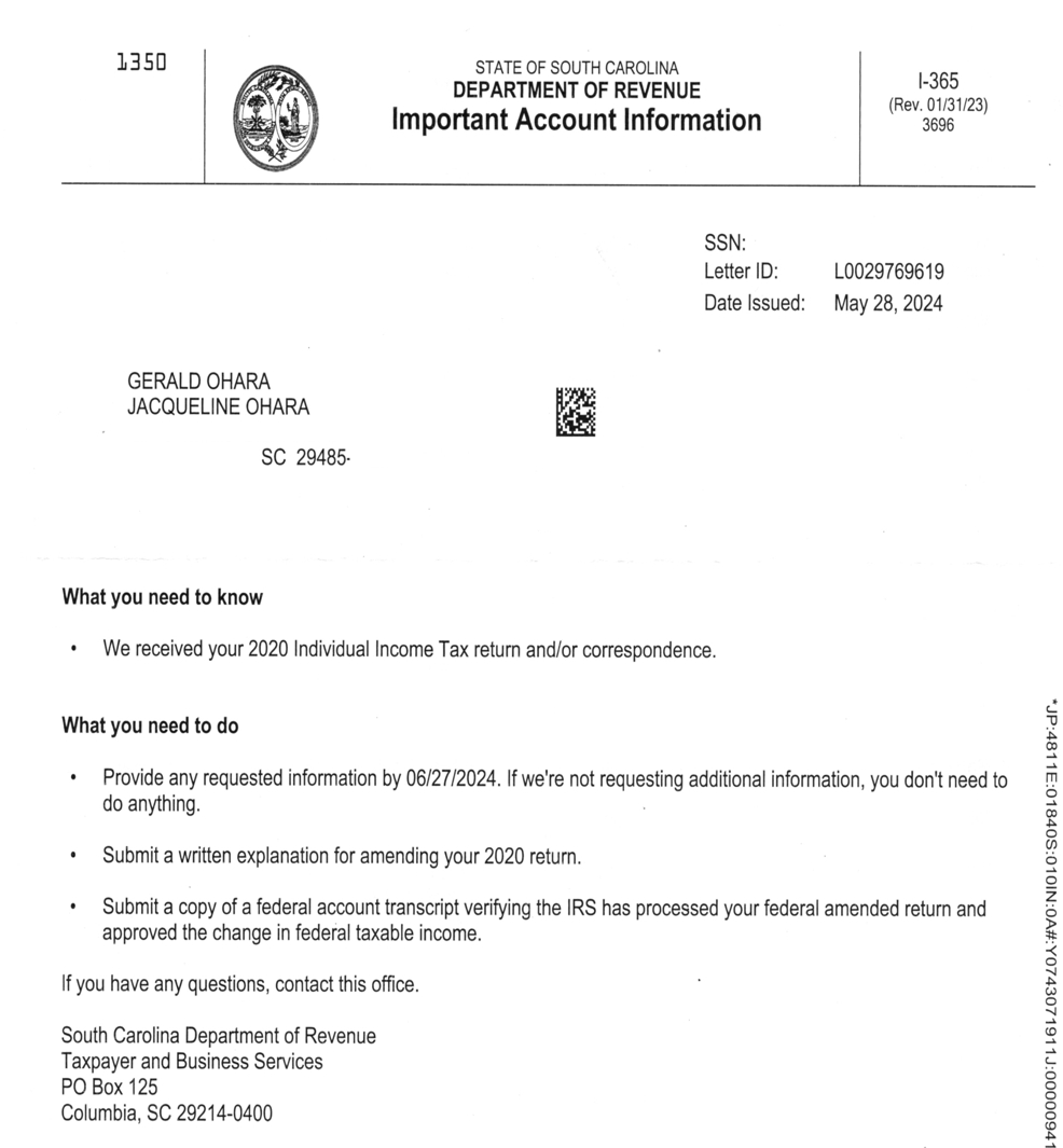 IT APPEARS THAT THE SCDOR hopes Gerald