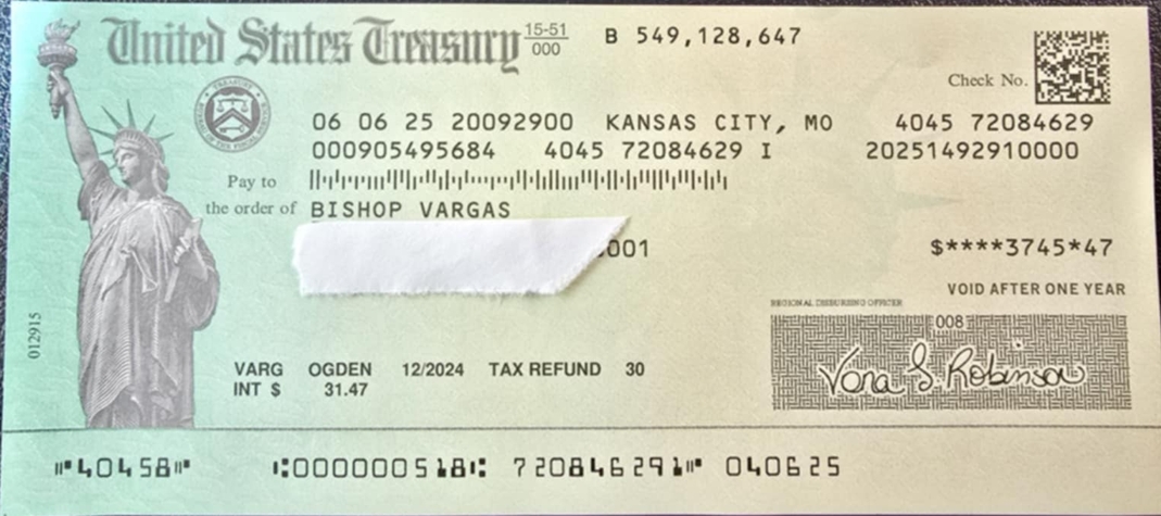 BISHOP IS ANOTHER NEW WARRIOR sharing his debut victory for the rule of law-- a complete refund of everything claimed on his 2024 federal return, plus interest: