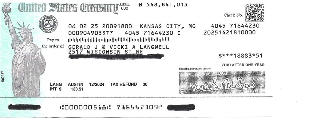 VETERAN VICTORS GERALD & VICKI share their two latest wins-- a complete refund, plus interest, of everything withheld and given over to the feds during 2024: