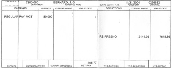 Michael and Janice Bernard had never filed a federal tax return for the year 2000, when in October of 2004, after a long period of increasing threats and demands, the IRS filed liens on their property and commenced garnisheeing more than $1,000.00 per week from Janice's salary. Not knowing what else to do, the Bernards sought out an attorney, who convinced them that filing a return was the only way to end their troubles. With the assistance of this "professional" (and for a considerable fee, no doubt), Michael and Janice prepared a return in the "conventional" (and IRS-preferred) way-- which is to say, without ever having read the law with which they imagined they were complying. This return declared them to owe $3,588.00 over and above what had been withheld from them during 2000 (an amount subsequently recalculated by the IRS to be $3,257.25). The return was submitted without any payment in regard to this additional liability, because the amount was, by that time, more than covered by what had been seized from Janice's earnings.