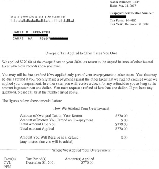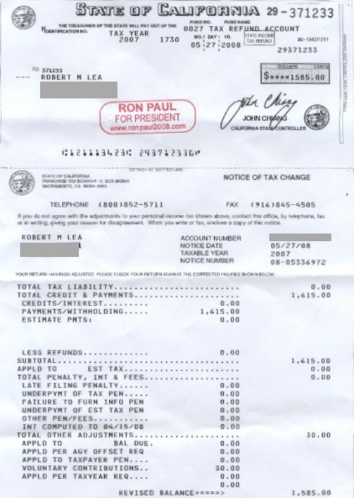 A few of these good American men and women-- such as those honored below-- are generous enough to send me the evidence of their victories in upholding the law, for the edification and inspiration of everyone. At the moment those shared refund checks, closing notices, and so forth total: