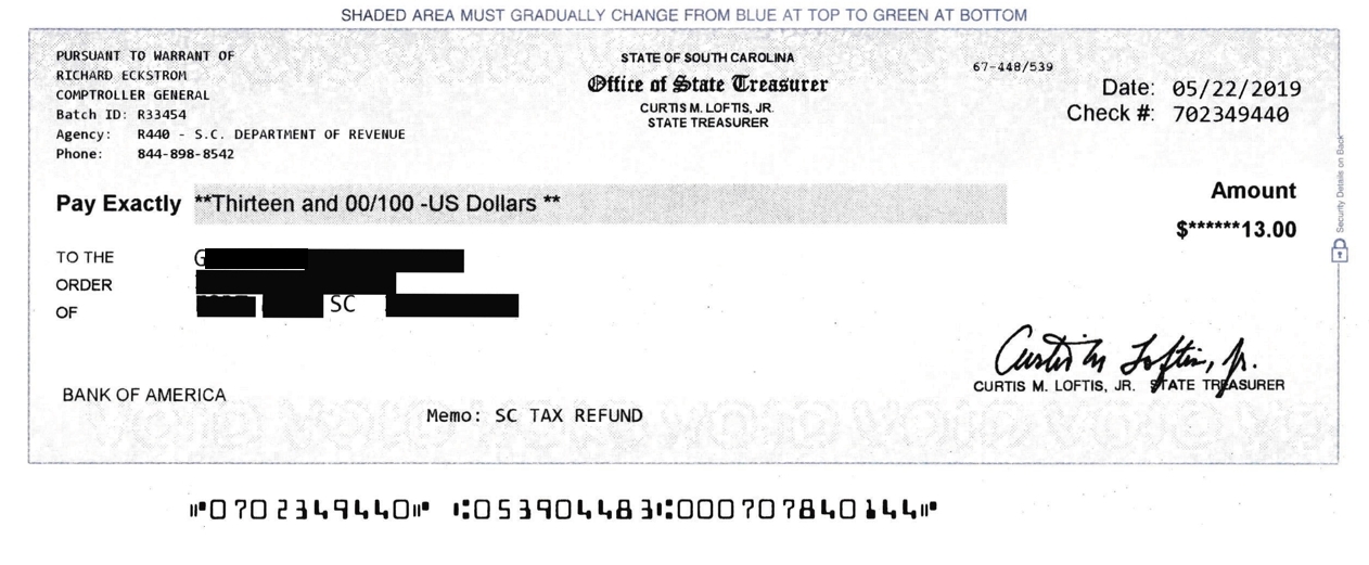 ...and here is G's South Carolina refund for 2018, secured by this filing: