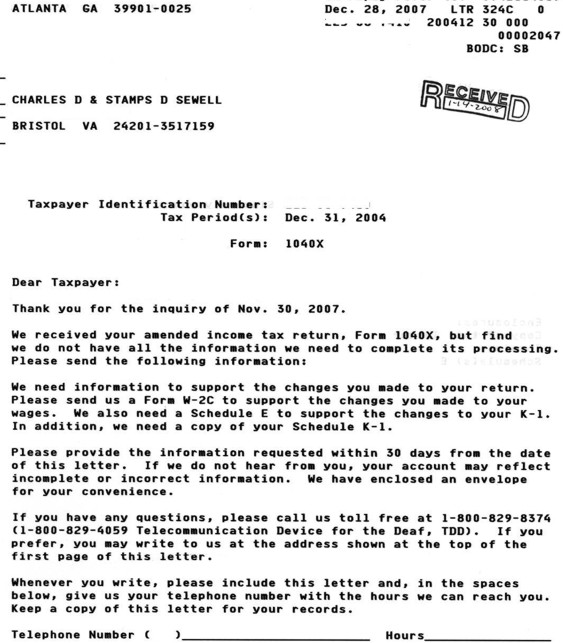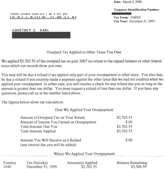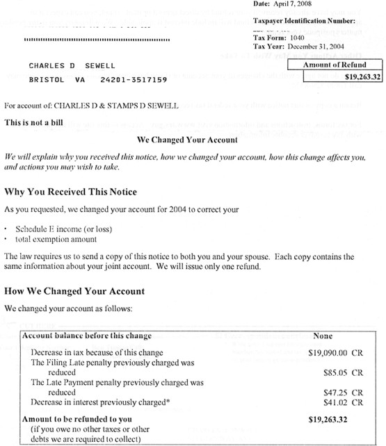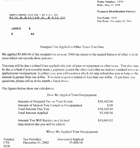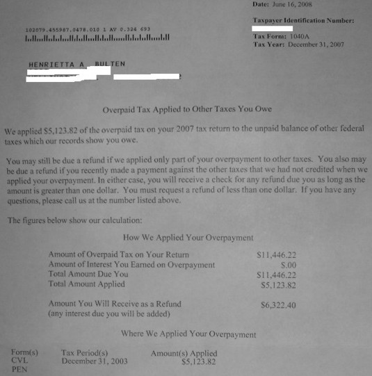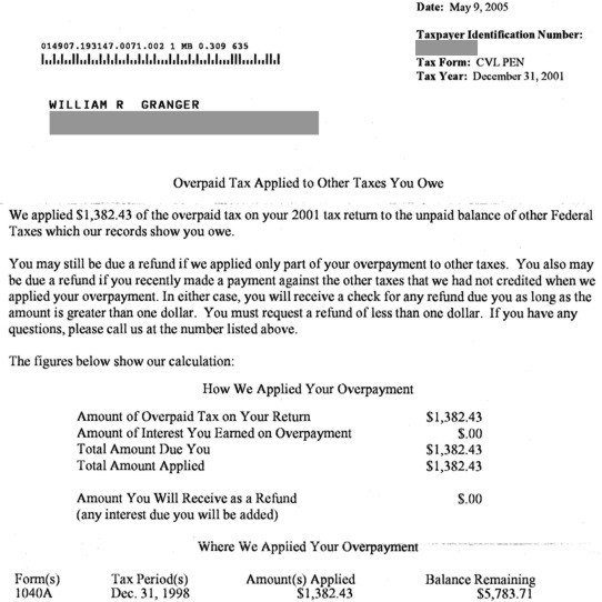 (This is an incomplete victory-- more had been withheld from Bill than this refund amount, but Bill's claim and the IRS responses in connection with this year have been complicated by Bill having originally filed a 'Schiff-inspired' return for this year before reading CtC and re-filing several years later.)