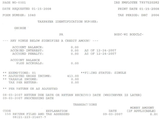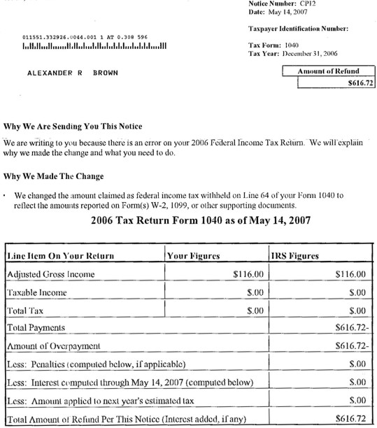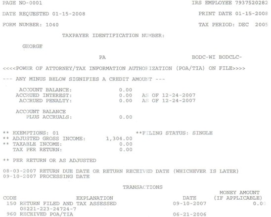 William had inadvertently failed to claim his personal exemption on his return-- the IRS helpfully applied it and reduced William's tax accordingly. Click here to see the relevant docs. Click here to enjoy William's 2007 Bethel, Pennsylvania victory; here to enjoy his 2007 federal and Pennsylvania victories; and here to enjoy his 2008 federal victory.