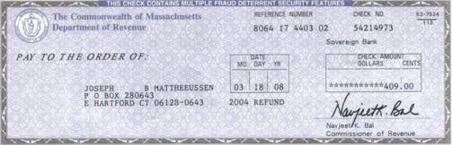A few of these good American men and women-- such as those honored below-- are generous enough to send me the evidence of their victories in upholding the law, for the edification and inspiration of everyone. At the moment those shared refund checks, closing notices, and so forth total: