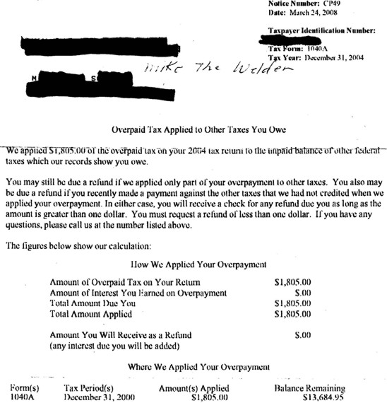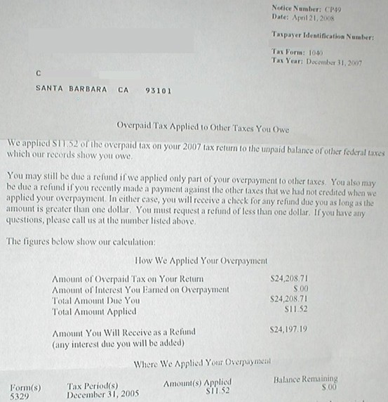 By the way, this refund cleared alleged outstanding liabilities for two previous years, one of which had led to a lien:
